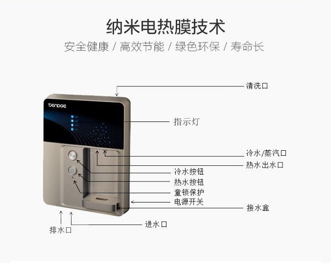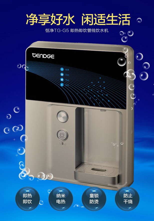 恬凈速熱管線飲水機(jī)TG-G5,采用納米電熱膜加熱技術(shù),有效殺死水中的細(xì)菌微生物,防治二次污染。3秒速熱,隨時(shí)可喝上熱水。恬凈速熱管線飲水機(jī)TG-G5自帶防干燒系統(tǒng)與童鎖,安全省心。
